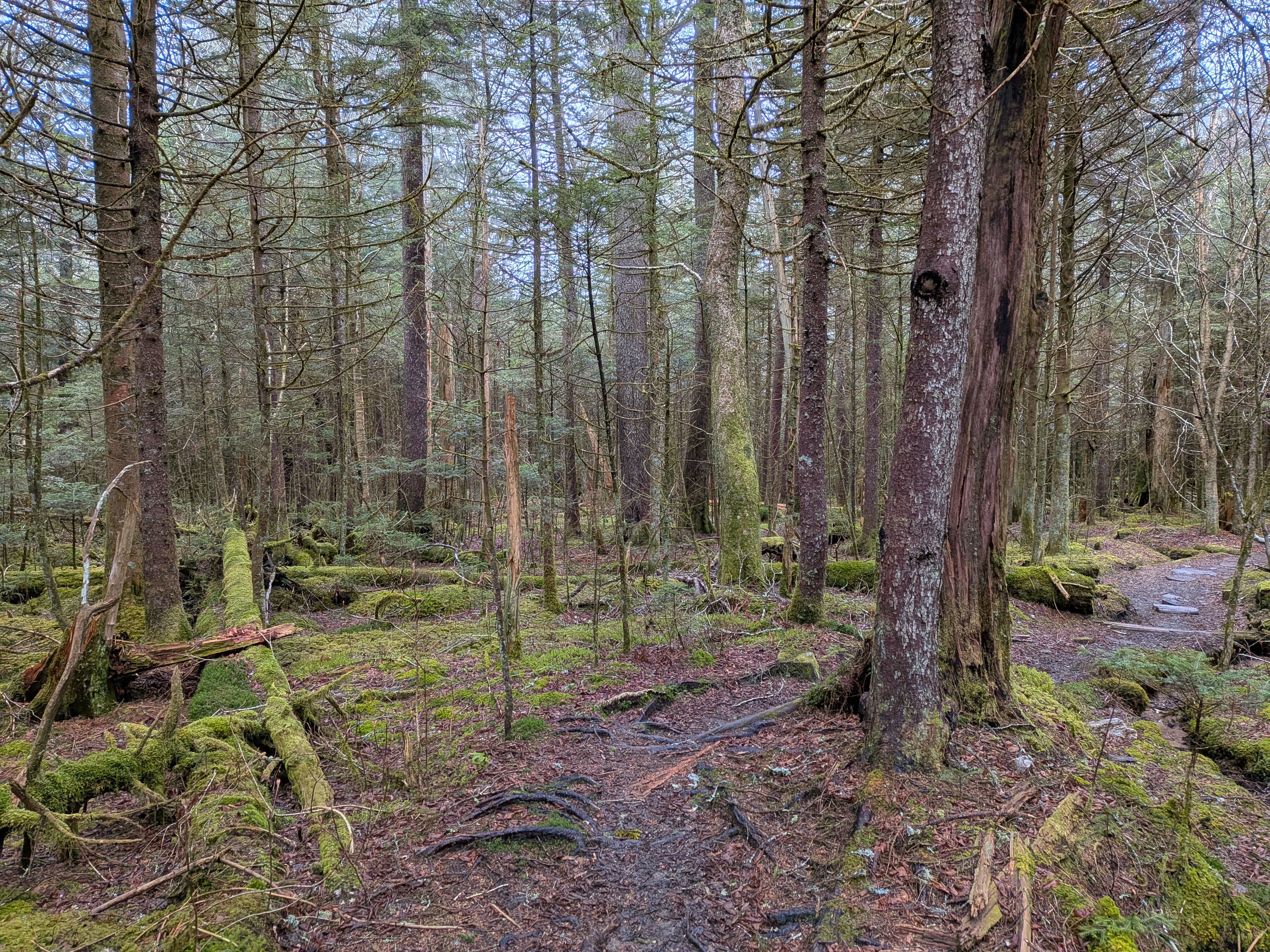 Hike thru to Newfound gap was harder than I thought it would be, but not horrible. Was very rainy, very cold, and I slipped on a rock pretty hard and have a gash in my elbow now. Still think this section of the forest is real cool looking.