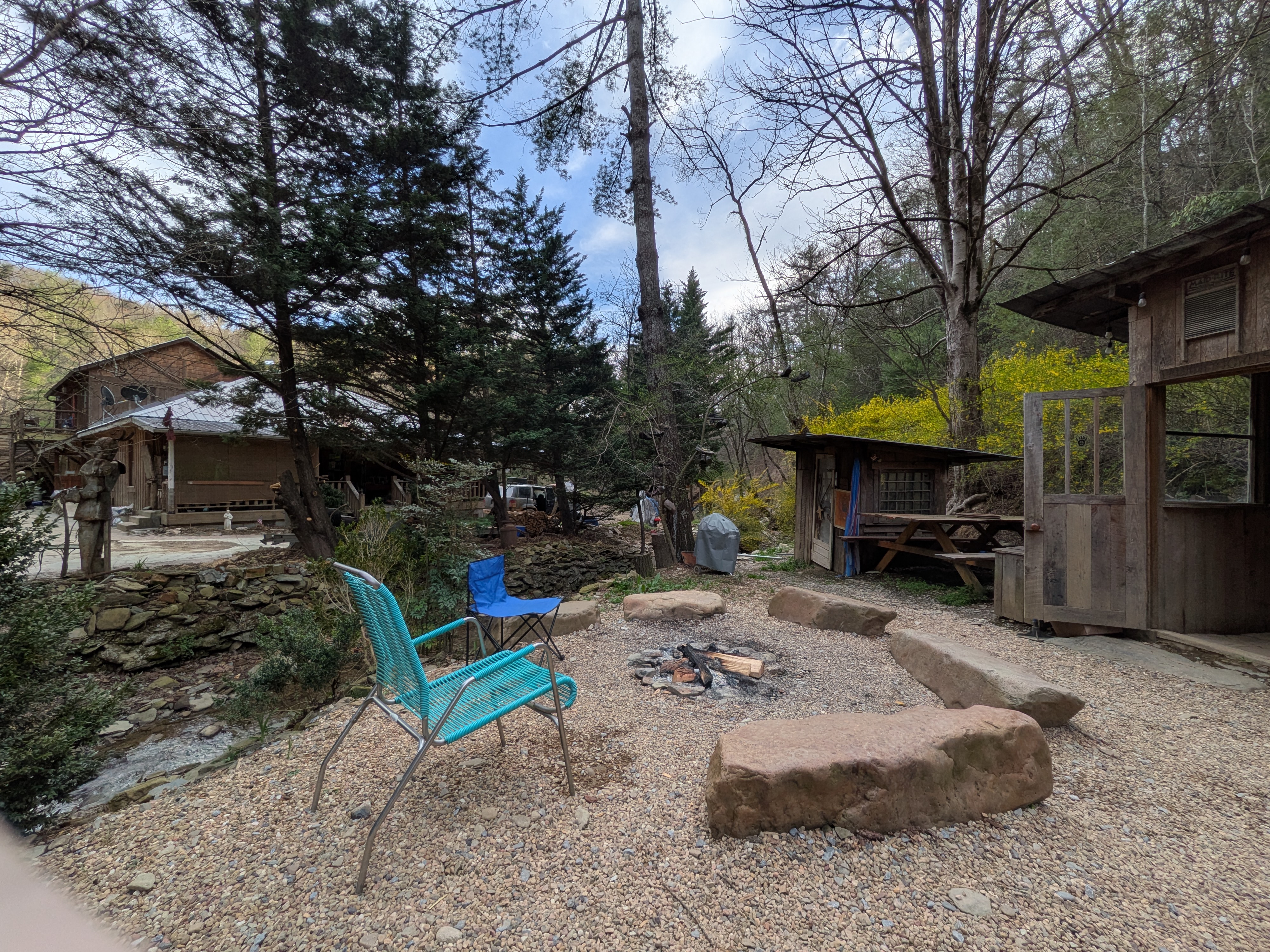 Standing Bear staff are a bunch of characters. One of them works at Dollywood during the day, one has a big Sasquatch costume that he tries to scare guests with but it mostly just drives the dogs and chickens here insane. Sat around the fire and chatted with them a bit and then went to my private cabin right next to the chicken coop to sleep.