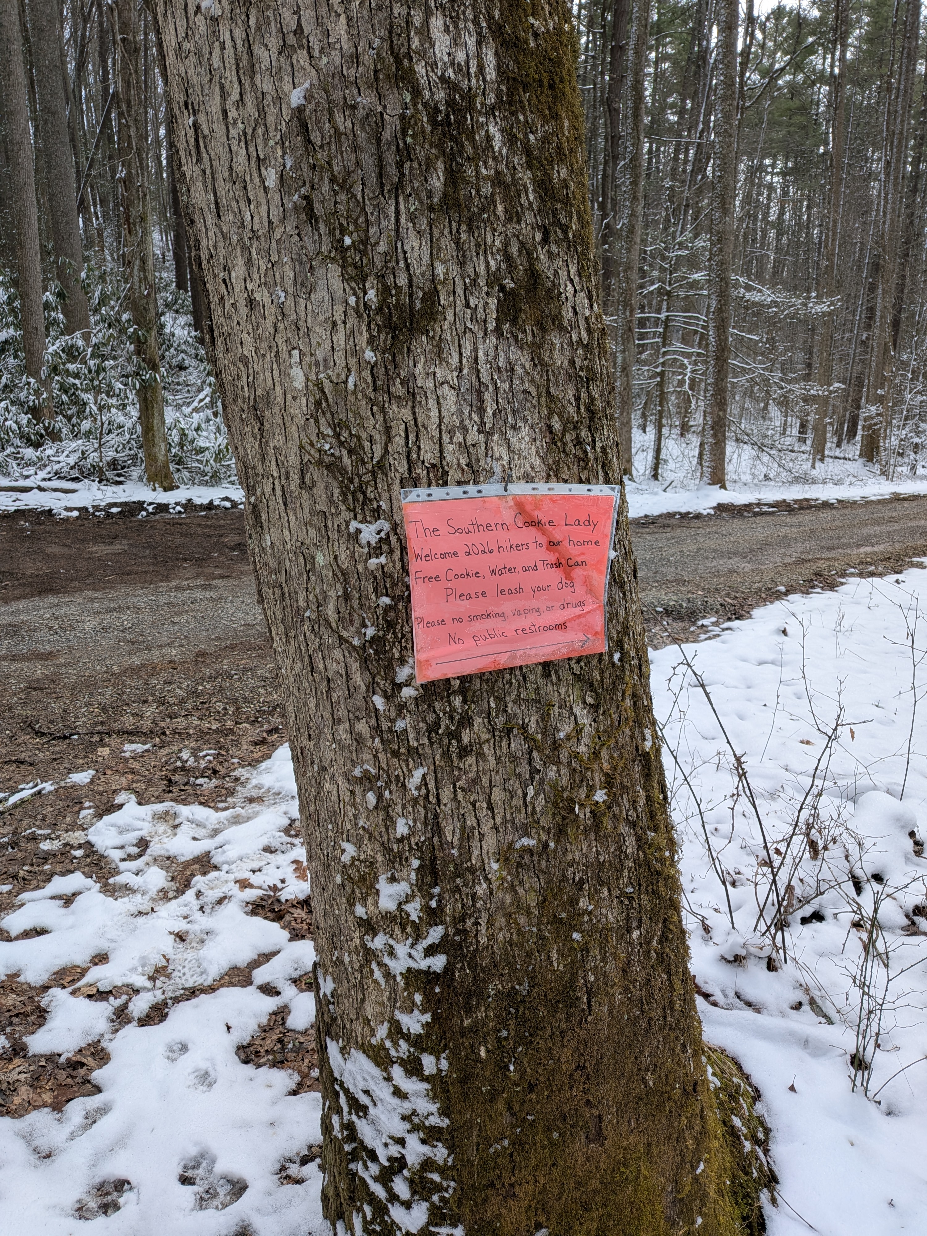 Made it to Jerry Cabin shelter. Was a bit of a slog and there were multiple points I thought I might have to just bail into a stealth campsite. Just endless ascent up snow, slush, and mud. Feeling a bit better than the middle of the day but I know tomorrow is going to be a rough one too. It is supposed to warm up a fair amount tonight, hopefully some of the snow melts. Otherwise may end up splitting tomorrow into two days (probably have enough food + am still fat) or bailing to a nearby hostel.