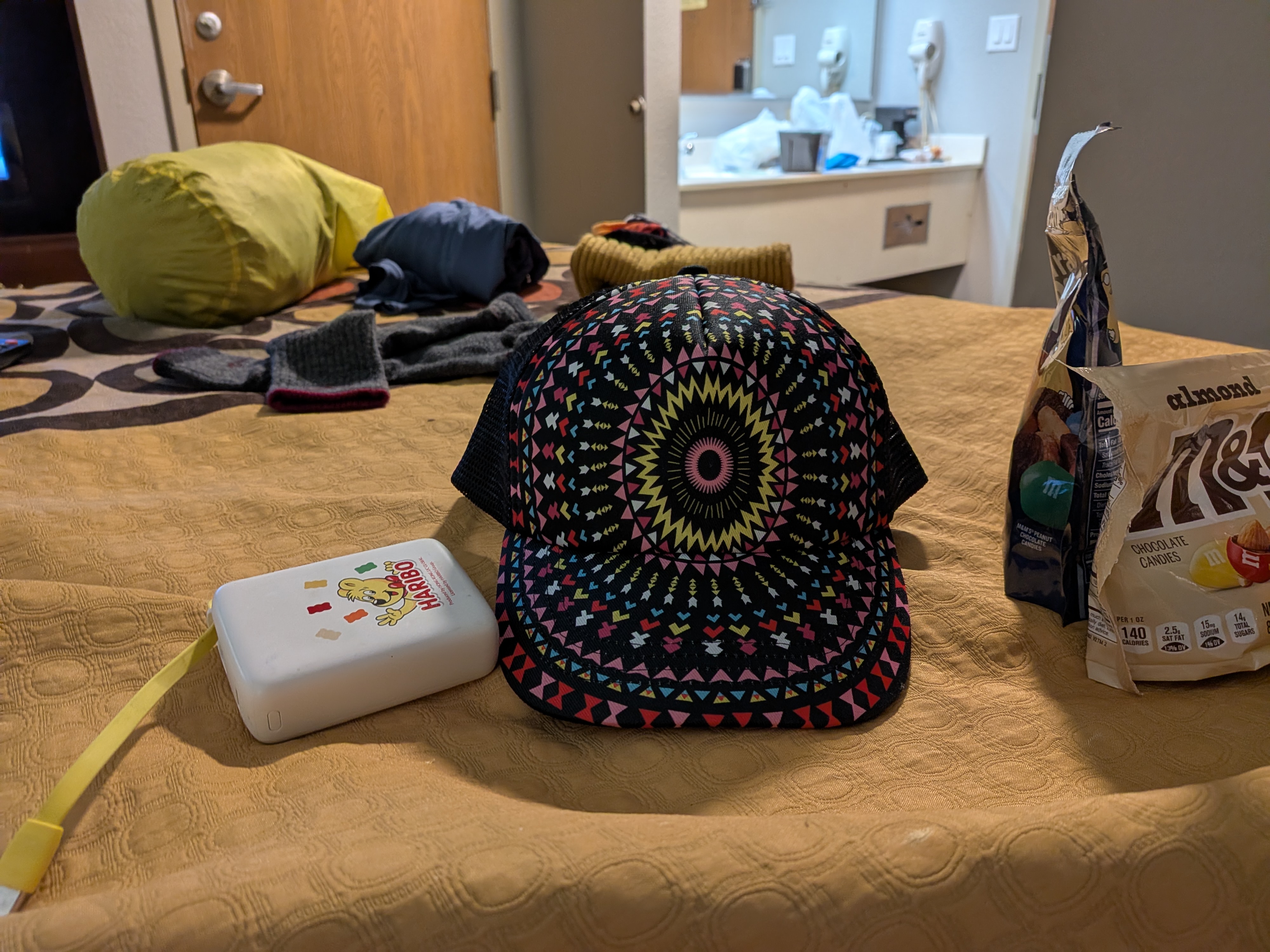 I think it is a “girl’s” hat (whatever that means), but it was the only one not covered in American flags and trucks, so I will make it work. I’m sure zpacks sells some dumb ultralight hat made of DCF that costs 200 dollars.