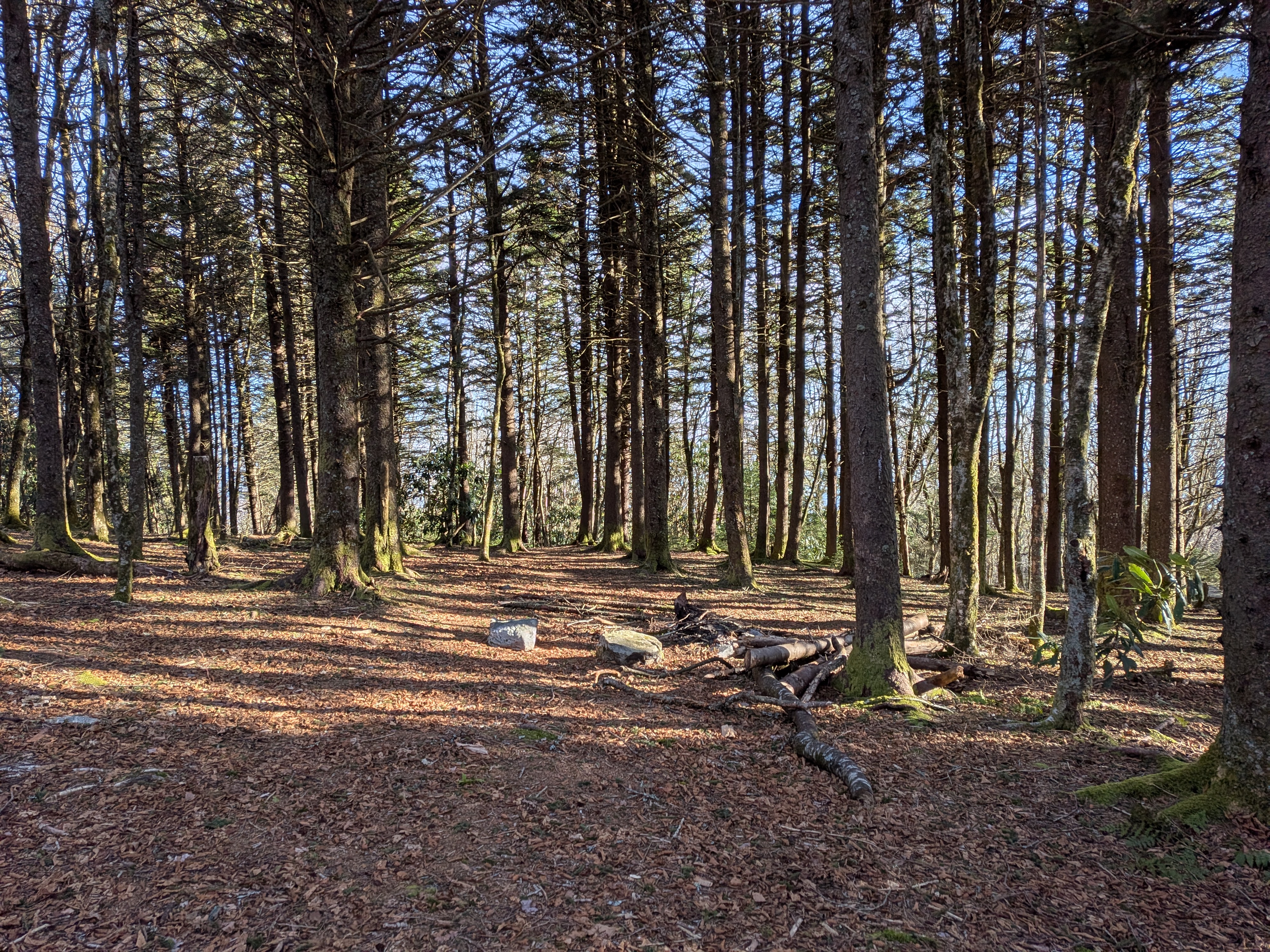 And then got to Unaka mt. Woods are starting to get piney here which is cool. Have this neat campsite all to myself.