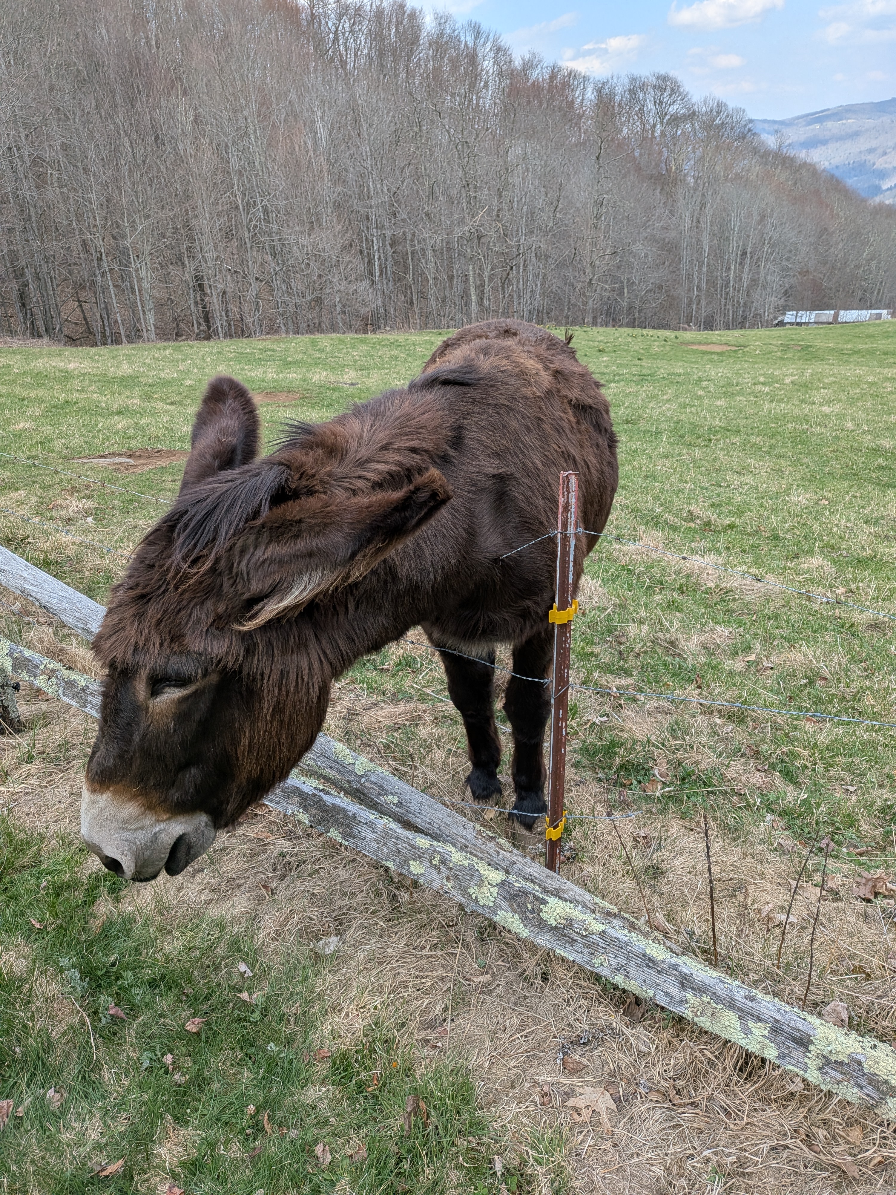 Felt like a near zero today. Pretty breezy, done by noon. Original plan was that some of us were going to make it to highway 19 e, and then stop off at a hostel there. Things got kinda complicated tho. Notyet had lucky charm’s Garmin that he was going to return, and it turned out that lucky charm was staying with a hiker host named Deborah, who, after hearing about returning the Garmin, offered Notyet a stay at her place. Notyet mentioned that he was planning on stopping at a hostel so that he and I could catch up some, and she offered to take me in too after he and lucky charm vouched for me, cool. Her home is very nice and she is very kind and she has a cool donkey named Ted.