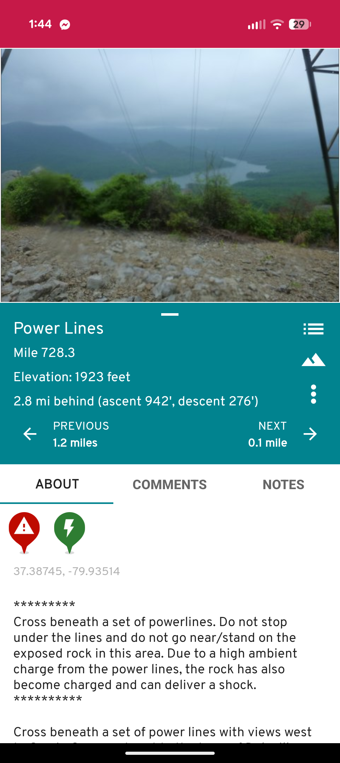 Tinker to Daleville/Roanoke looked like a pretty straight shot, so my hope was that if I was hiking that stretch in the heat, at least it would be flat and easy. Nope. Last 3 or so miles are an open sun scramble over very hot and apparently electrified rocks.